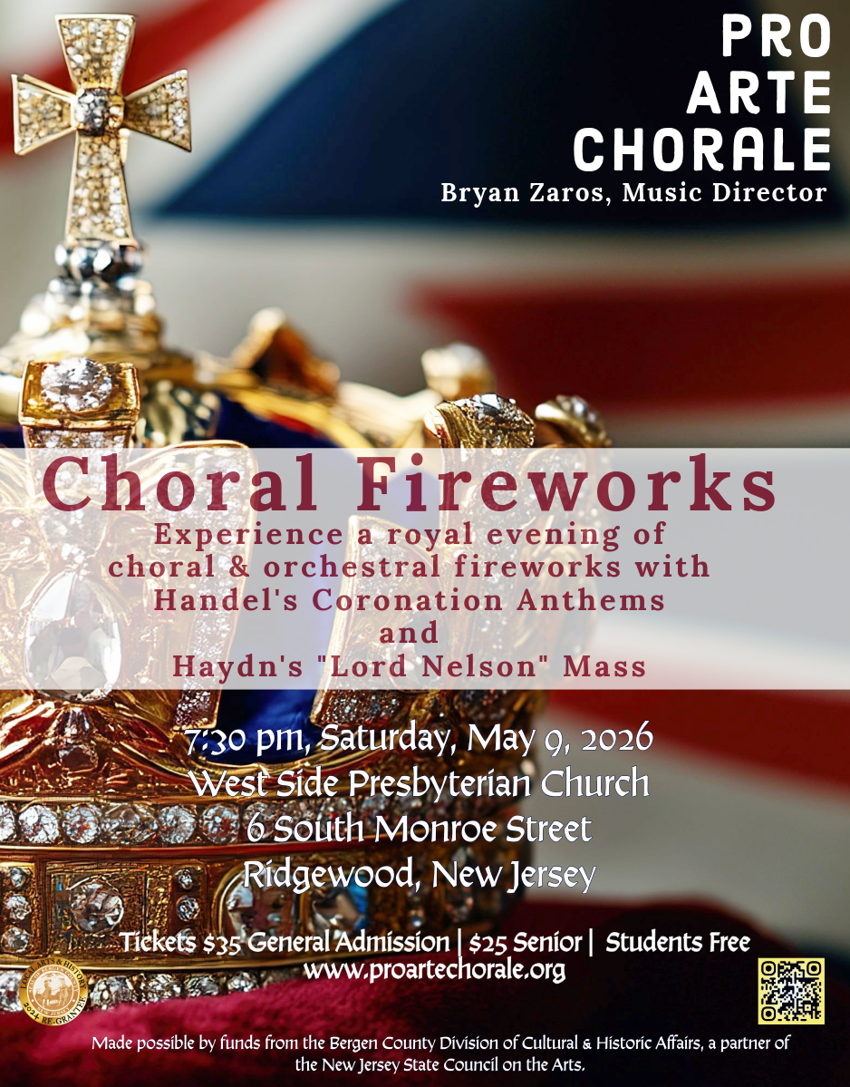 The Pro Arte Chorale, under the direction of Dr. Bryan Zaros, is proud to unveil its 2025–2026 season—a powerful and inspiring lineup of choral-orchestral masterworks that explore themes of destiny, hope, and triumph. The season opens with Paths of Destiny on Saturday, November 22, 2025, a thrilling collaboration with the Ridgewood Symphony Orchestra featuring Parry’s I Was Glad, Verdi’s Overture to La Forza del Destino, Brahms’s Schicksalslied (Song of Destiny), and Saint-Saëns’s Messe de Requiem. This sweeping program takes listeners on a journey through drama and reflection, from moments of quiet reverence to soaring, radiant beauty.